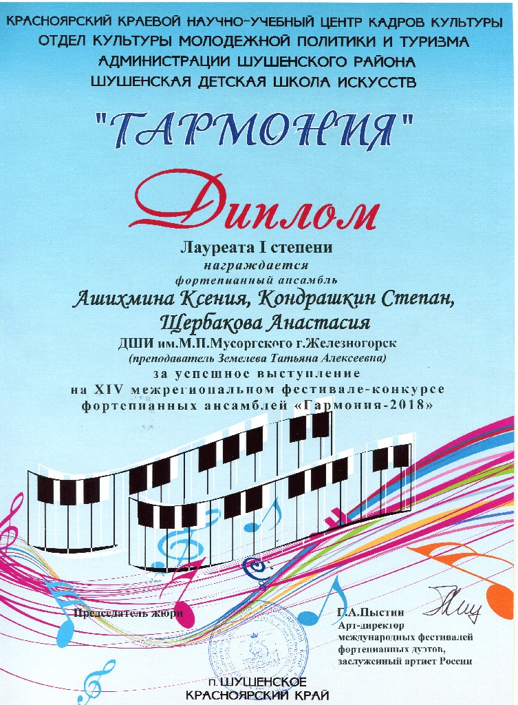 10-11 марта 2018 г., в пгт. Шушенское, Красноярского края, проходил XIV межрегиональный фестиваль-конкурс фортепианных ансамблей «Гармония- 2018».