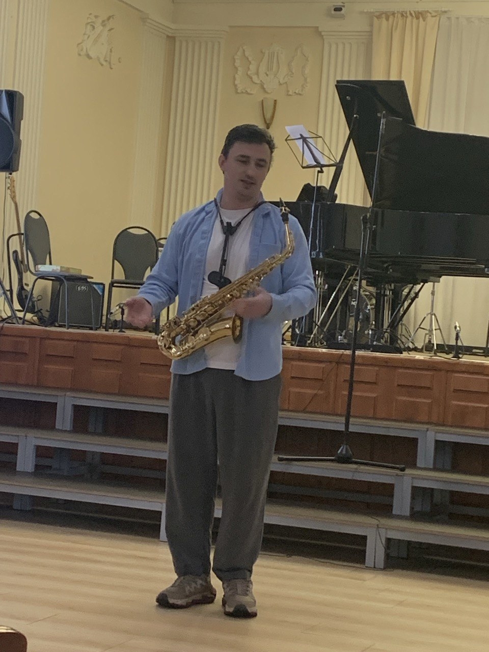 11 марта в большом зале ДШИ для учащихся оркестрового (духового) отделения прошел мастер-класс известного красноярского саксофониста Артура Назарова.